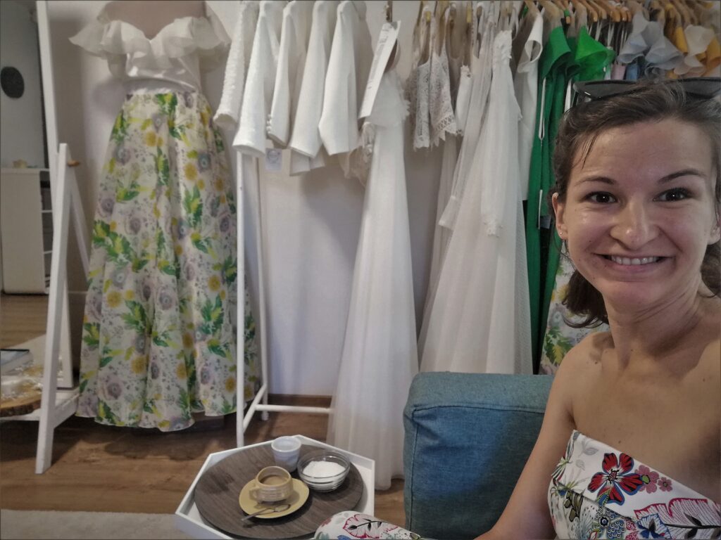 A következő próbákra egyedül mentem, de ennek is megvolt a varázsa. Nagyon közvetlen a csapat, otthonosan érzem magam. Ameddig várakoztam, kávéztam, kicsit magammal, a gondolataimmal voltam, pihentem. Utána pedig a mérések során, éreztem, ahogy egyre közelebb kerülök a ruhámhoz. Bár úgy terveztem, hogy nem lesz fátylam, a harmadik ruhapróbán felpróbáltam egyet, és elérzékenyültem, úgyhoz ez megváltoztatta az elképzelésem és örülök, hogy esélyt adtam.