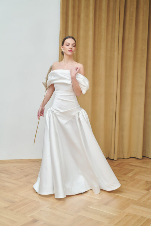 Esther – pillangó-ujjakkal – Sellő fazonú krepp-zsorzsett szoknyával