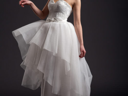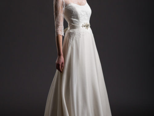 Acest stil personalizat, care scoate în evidenţă talia şi şoldul, evazată spre partea de jos este întotdeauna la modă.Recomandată mireselor cărora le place forma discretă, dar şi celor care caută linii feminine. Spatele decupat adânc şi broderia discretă cu perle conferă rochiei o eleganţă aparte.