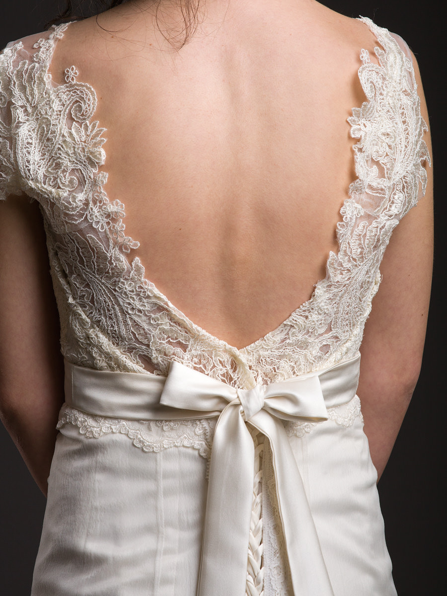 A minimalista formák és a diszkrét, finomka díszítőelemek kedvelőinek ajánljuk ezt a modellt. Szabásából adódóan finoman kiemeli az alakot, mégsem túl hivalkodó. A csipkével körbefont nyitott hátának köszönhetően árad belőle a nőiesség.