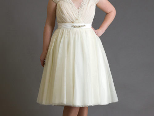 Umărul şi decolteul acoperit cu dantelă fină atrage atenţia asupra acestei rochii. Poate fi avantajoasă pentru domnişoare plinuţe, deoarece ornamentele subliniază liniile verticale. Fusta trendy din tul poate fi detaşată în timpul petrecerii.