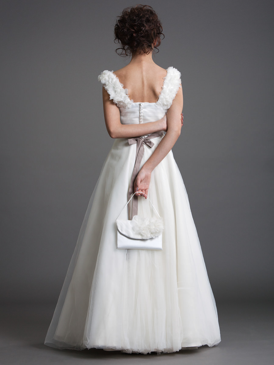 Fusta bogată din tul şi texturile transparente conferă acestui model un stil boem şic.La talie se pot folosi panglici colorate sau curele cu perle discret strălucitoare.