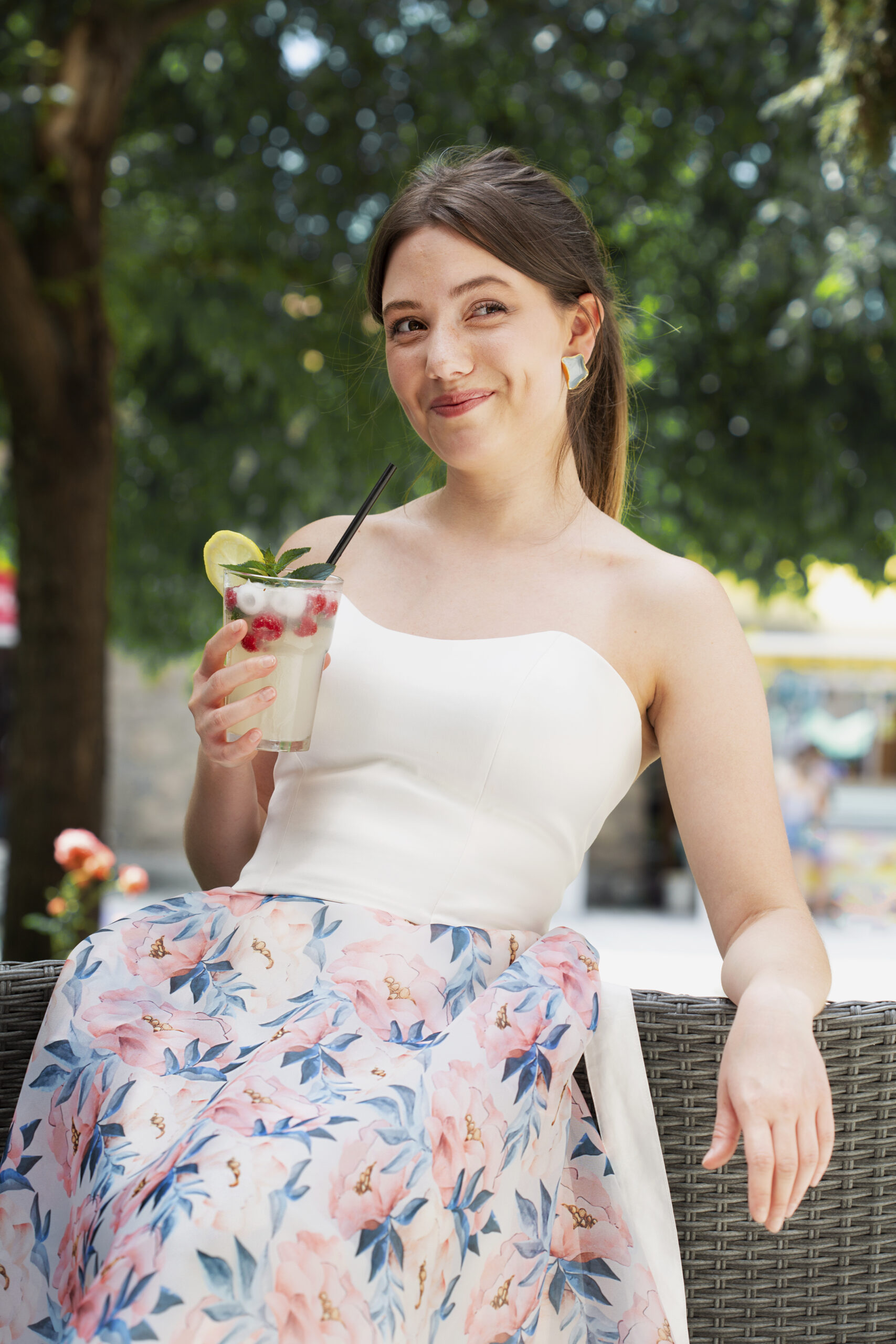 A strukturált szabás és az anyag nemcsak eleganciát, hanem tartást is kölcsönöz viselőjének, miközben a minimalista megjelenés lehetőséget ad az egyéni stílus kibontakoztatására. Tökéletes választás egy nyári alkalomra, ahol a természetes fényben még inkább érvényesül a darab tisztasága és visszafogott bája.