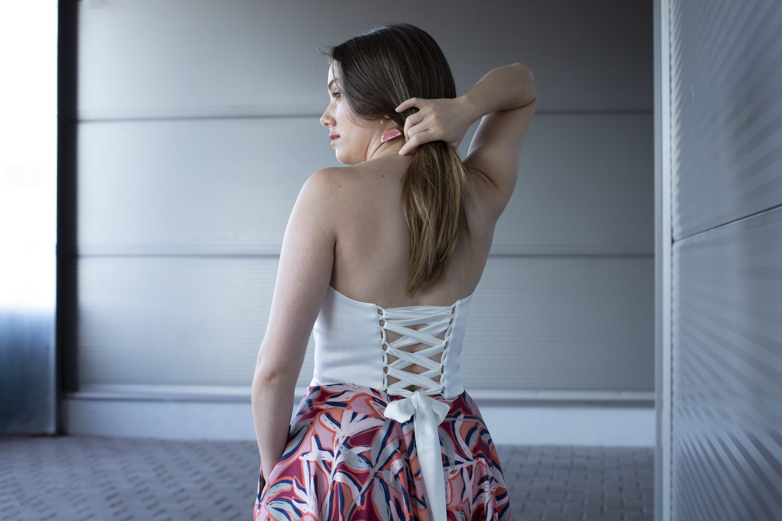 Ez a letisztult vonalvezetésű, törtfehér, szatén fényű korzett a nőiesség modern újraértelmezése: egyszerre kortalan és friss. A finoman formált felsőrész lágyan követi a test vonalát, kiemelve a vállakat és a dekoltázst, anélkül hogy túlzóvá válna.