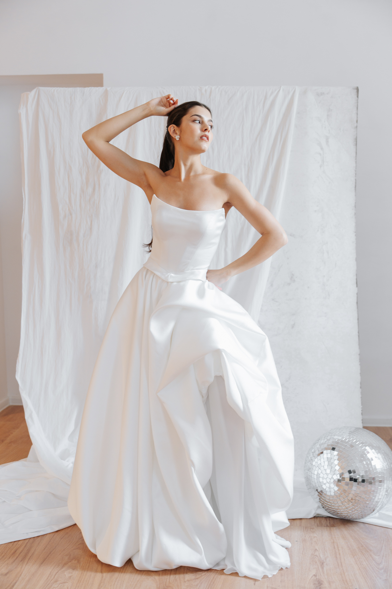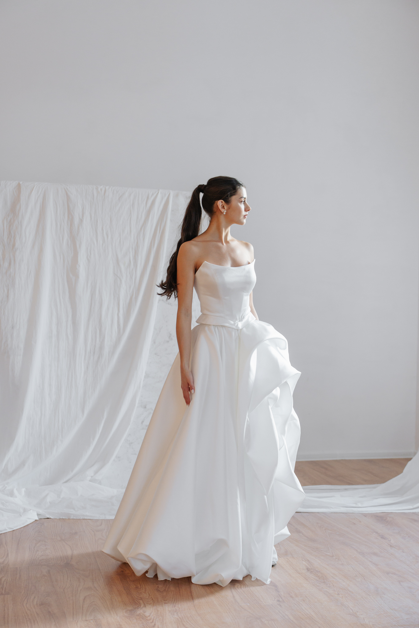 Minden menyasszonyi ruhát haute couture minőségben, a te méretedre szabva készítünk el, így arra is lehetőség nyílik, hogy kedvenc felsőrészedhez magad válaszd álmaid szoknyáját.