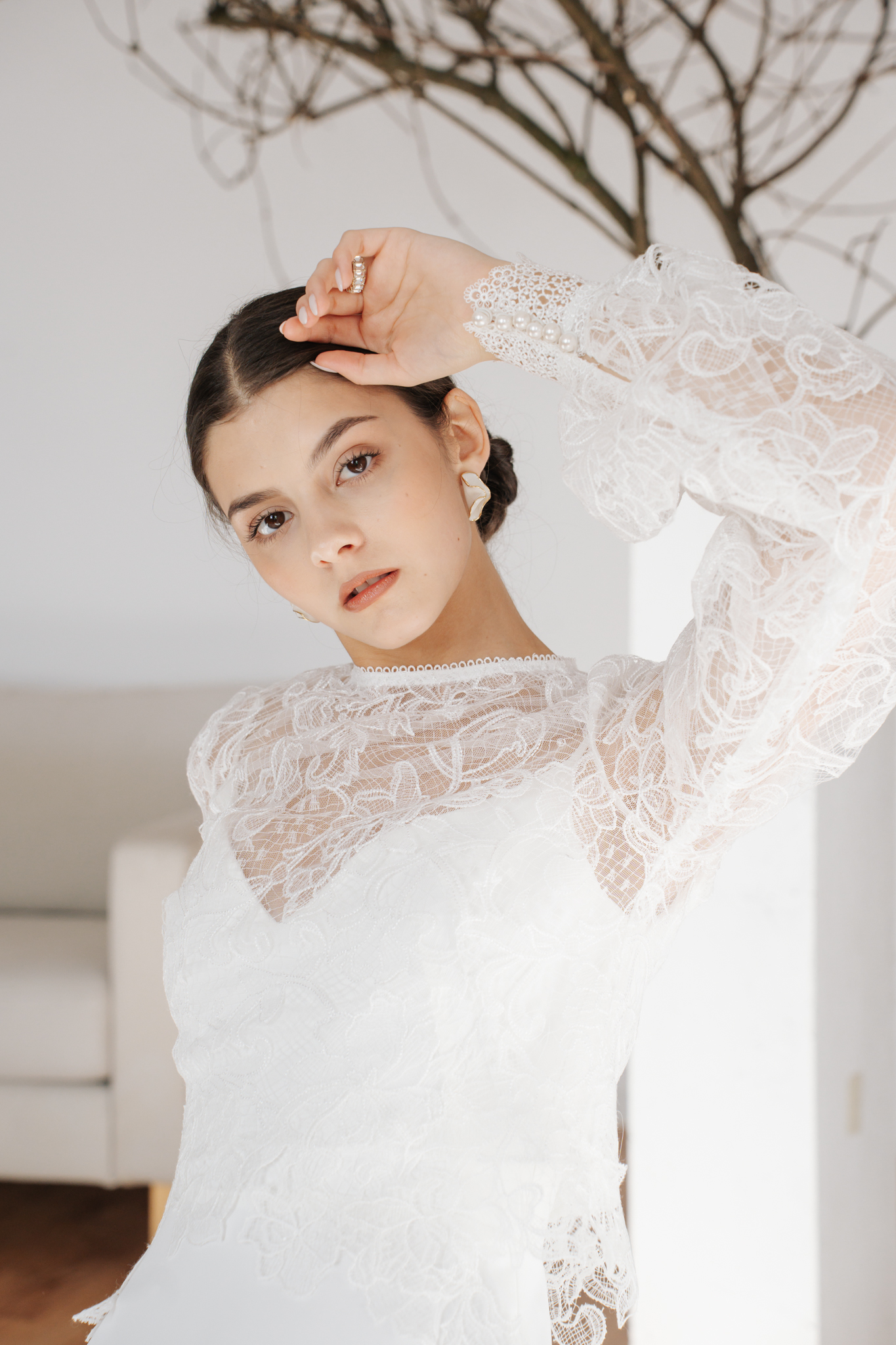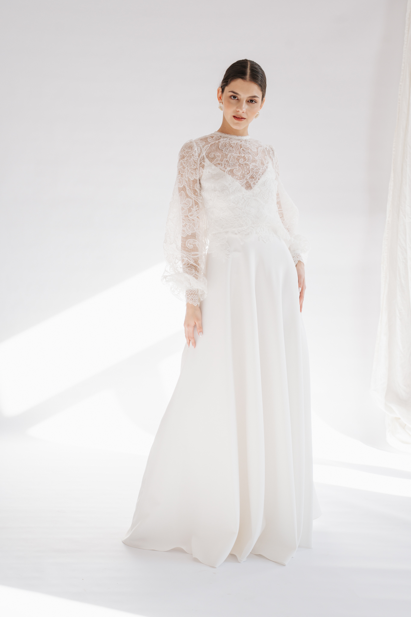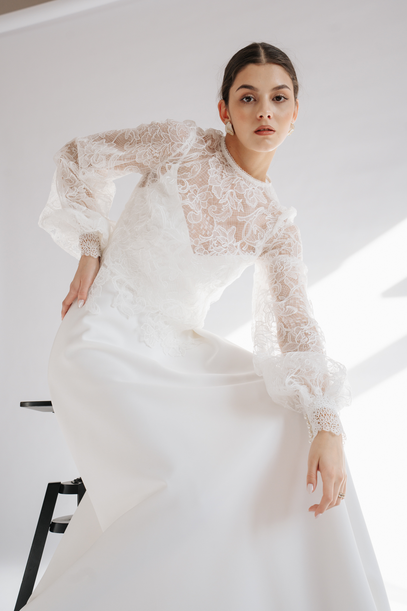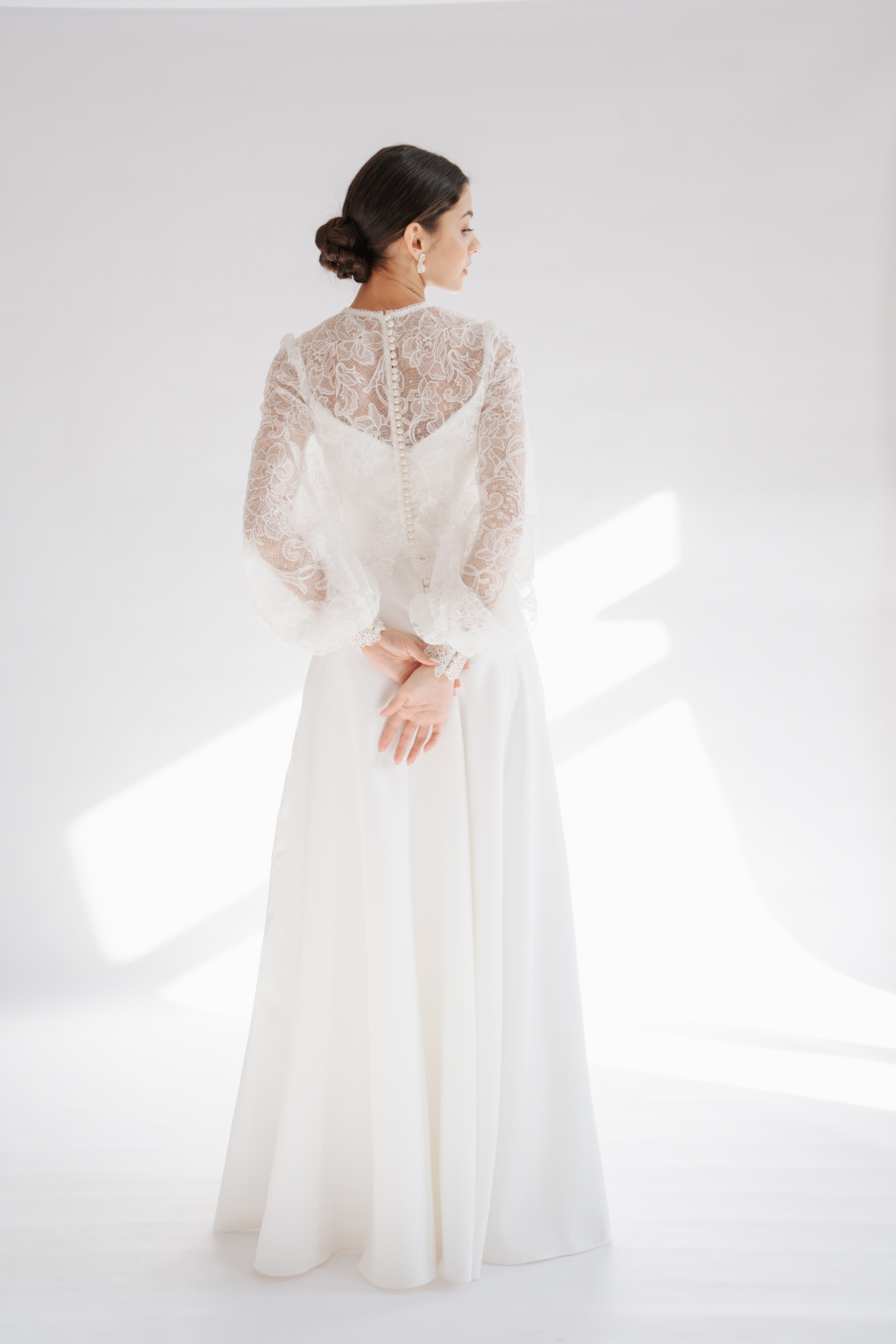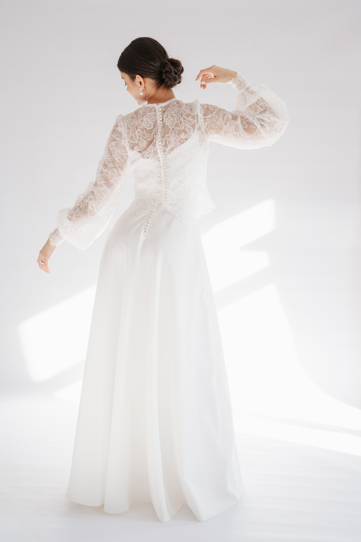 Romantikus, virágmintás csipkéből készült a Laura top, melyet a hosszú, buggyos ujja valamint a hátán levő dekoratív gombsor jellemez. Különálló darab, bármely minimál ruha méltó kiegészítője lehet egy modern menyasszony számára.
