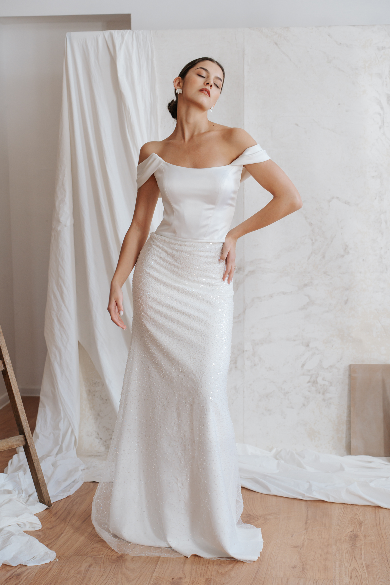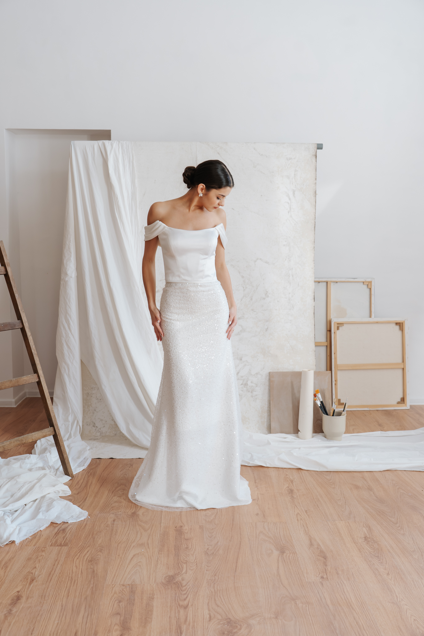 Minden menyasszonyi ruhát haute couture minőségben, a te méretedre szabva készítünk el, így arra is lehetőség nyílik, hogy kedvenc felsőrészedhez magad válaszd álmaid szoknyáját.