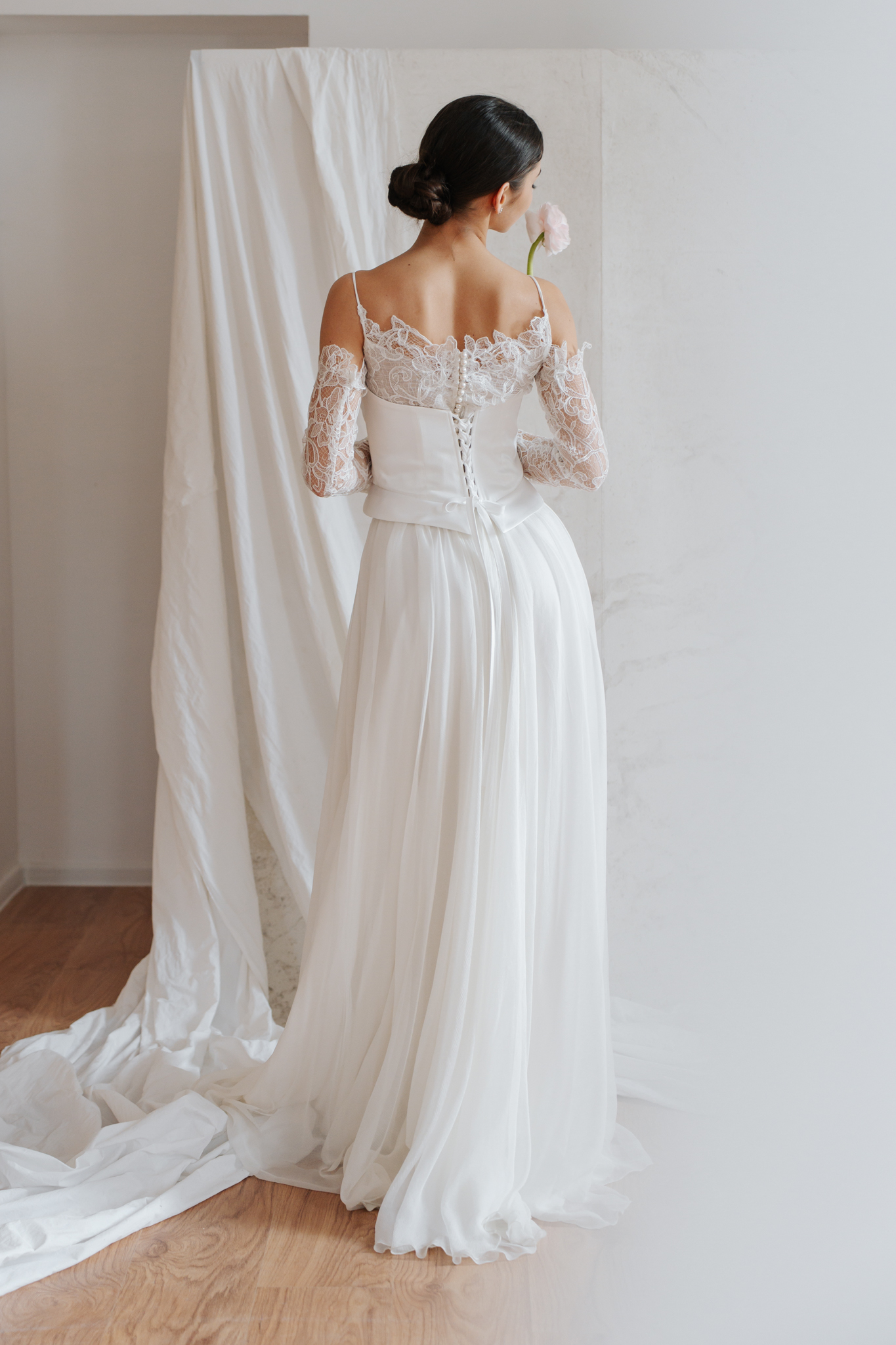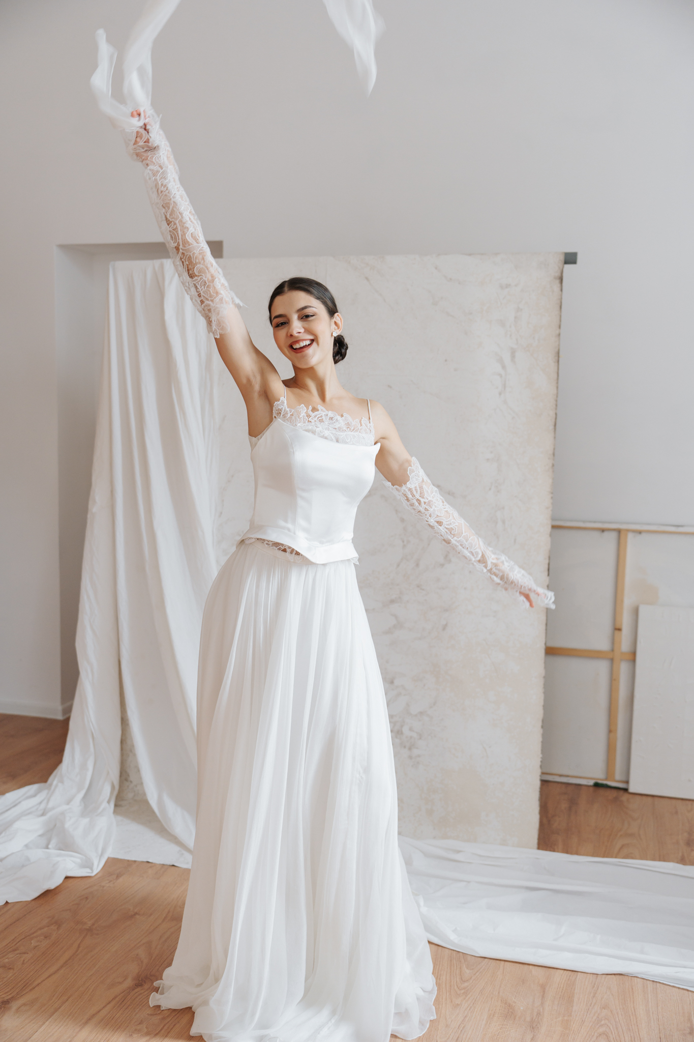 Minden menyasszonyi ruhát haute couture minőségben, a te méretedre szabva készítünk el, így arra is lehetőség nyílik, hogy kedvenc felsőrészedhez magad válaszd álmaid szoknyáját.