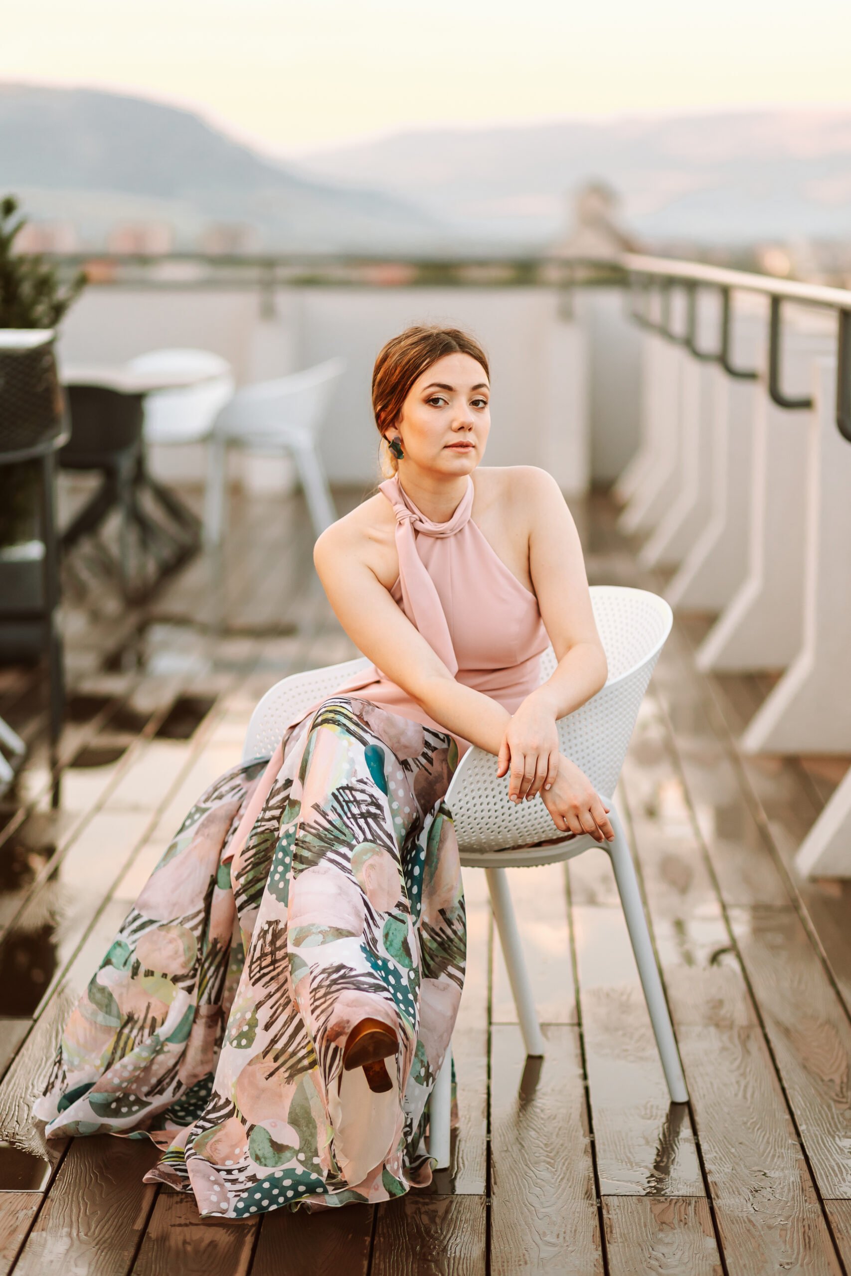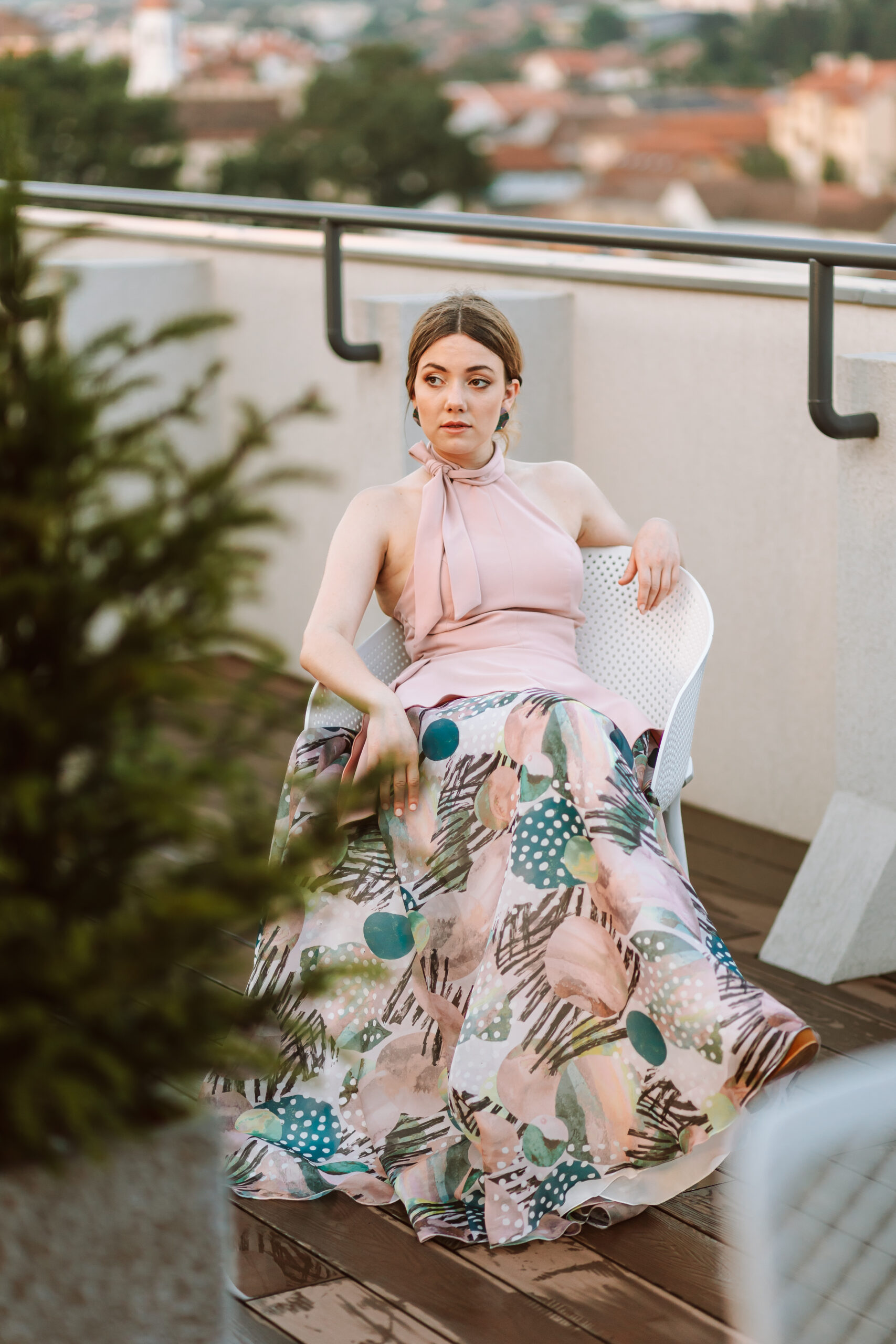 Ez a színes, hosszú organzaszoknya könnyed és romantikus hatást kelt. A festői minta teszi igazán különlegessé ezt a darabot. A hatalmas egyedi tervezésű mintáknak és a lágy árnyalatoknak köszönhetően az összhatás feltűnő, de nem hivalkodó. A szoknyára zsebet varrtunk, ahova elrejtheted a telefonod, papírzsebkendőd, rúzsod.