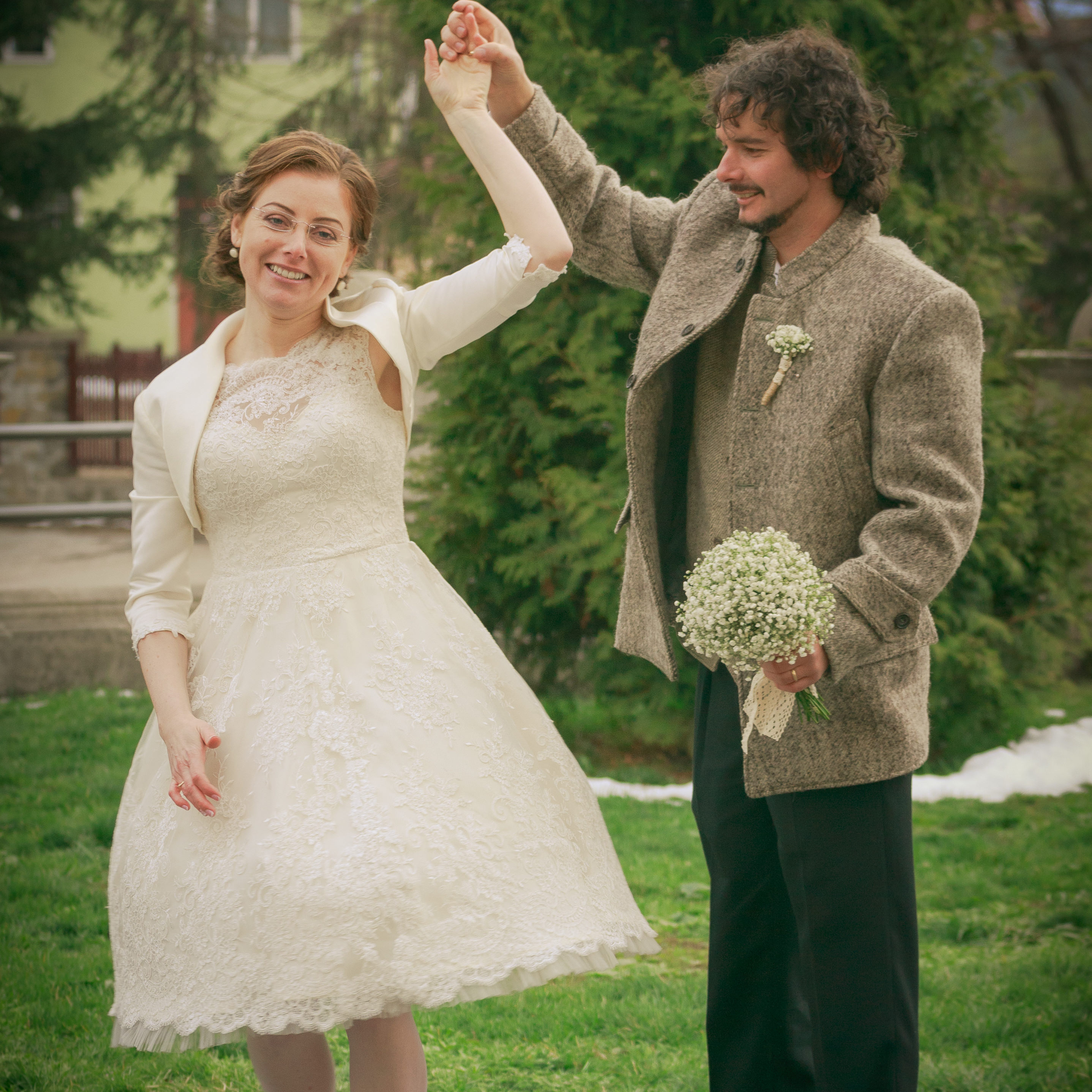 Am avut o rochie scurtă, dar le-a plăcut tuturor, inclusiv logodnicului meu. Mă simțeam eu însumi în rochie, consider că acesta este cel mai important aspect la rochiile de mireasă, să poți fi exact ceea ce ești tu când o porți…