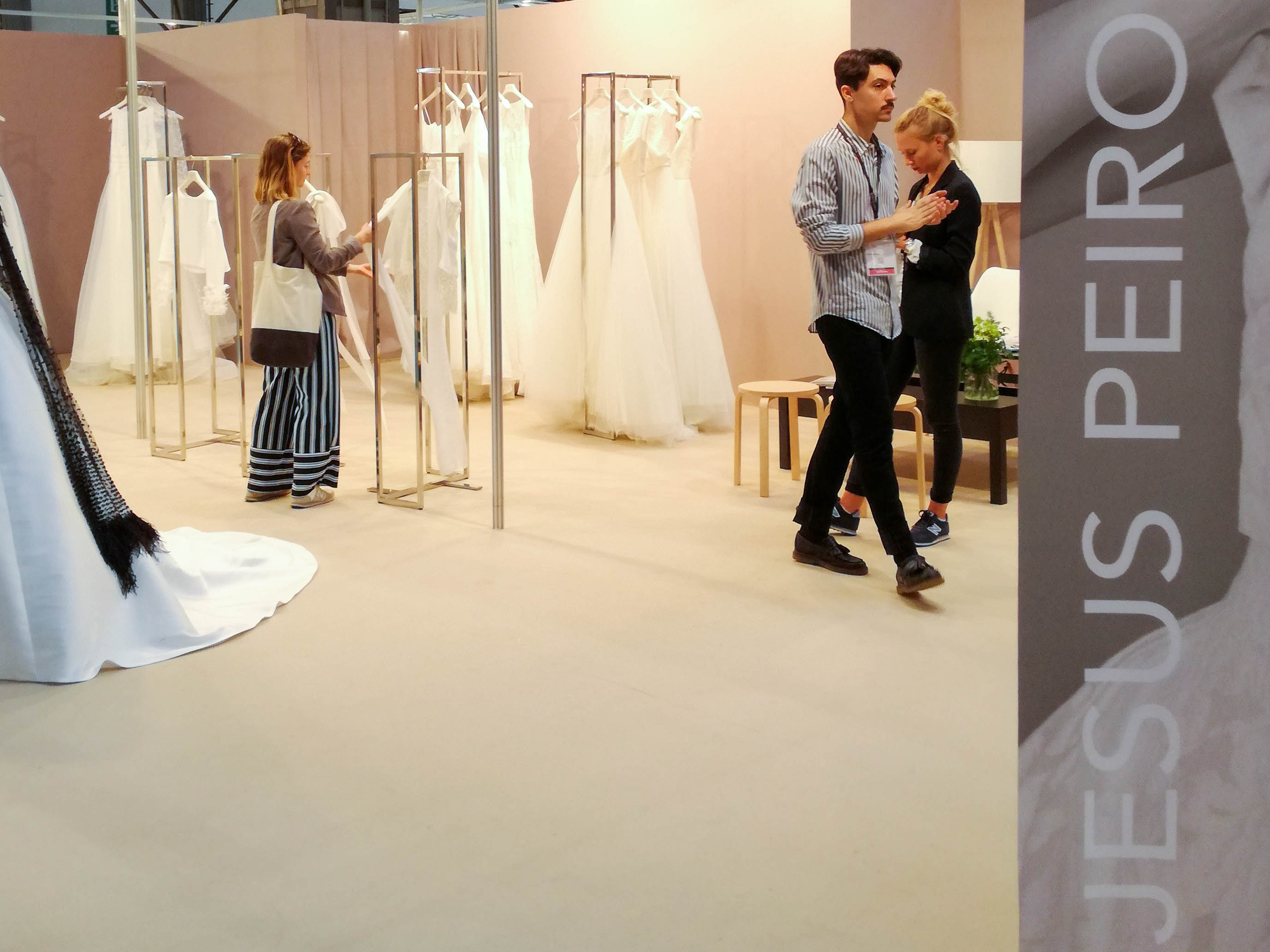 În funcție de vizitatori noi am fost curioși, în primul rând, să aflăm care sunt trendurile dominante ale pieței mondiale și în ce fel se potrivesc ele cu ceea ce înseamnă Delikates Couture. Știam că în general vom vedea firme mari, în showroomuri imense, cu sales manageri în forfotă, modele, bonbon și rochii splendide, de paradă. Am fost curioși să observăm niște soluții tehnice și felul cum aceste branduri se prezintă distribuitorilor.